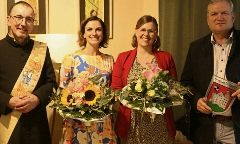 Bürgermeister Hans Laumer spricht von einem Glücksfall für die Gemeinde Zandt. Als er von Daniela Irrgang eine telefonische Anfrage erhalten hatte, habe er sofort seine Mithilfe und die der Gemeinde zugesichert. Mittlerweile ist der Praxisbetrieb gut angelaufen. Für die Zukunft wünscht er alles Gute und überreicht Blumen, ein Kochbuch – erstellt vom Zandter Kinderhaus – und das Gemeindewappen. Blumen erhält auch Dr. Evelyne Männer, weil sie ihre Räume für die Praxis zur Verfügung stellte.