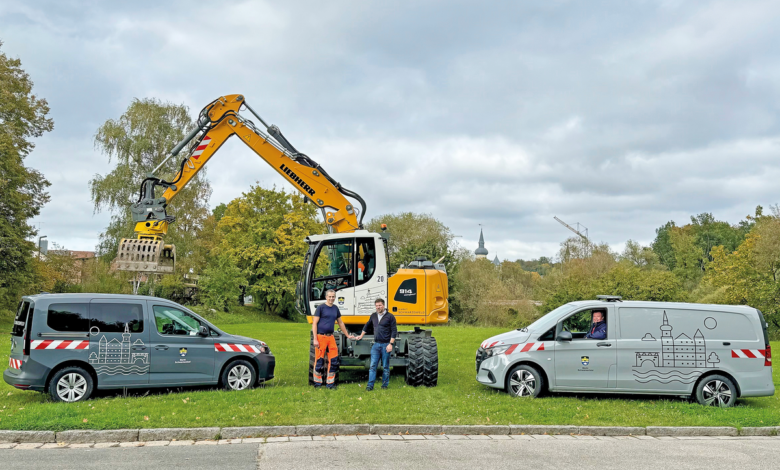 Die beiden Baggerfahrer des Bauhof-Teams freuen sich über den neu angeschafften gebrauchten Liebherr Mobilbagger Compact A914. Bürgermeister Peter Neumeier übergibt zudem einen neuen Mercedes Vito an das Team der Kläranlage. Dieser ersetzt einen in die Jahre gekommenen VW Amarok. Der Vito wird für Fahrten im Gemeindegebiet, insbesondere zur Instandhaltung der Pumpwerke, benötigt.