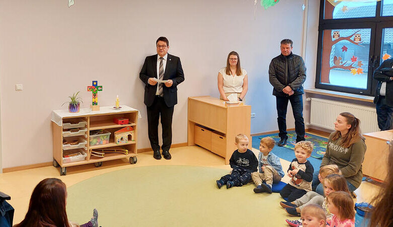 „Vielen Dank an alle Beteiligten“, richtete sich Bürgermeister Thomas Falter bei der Einweihung an die Gäste. „Planungsbeginn im März, Beauftragung der Firmen im Mai, Baubeginn Anfang Juni und Fertigstellung im September – die rasche Umsetzung ist ein Beleg für die exzellente Zusammenarbeit“, so der Bürgermeister. Einrichtungsleiterin Brigitte Schmidhuber schloss sich dem Lob und dem Dank an: „Durch die neue Raumaufteilung wurde ein großer pädagogischer Mehrwert geschaffen.“ Ein in sich abgeschlossener Bereich für die altersgemischte Sternschnuppen-Gruppe ist entstanden.